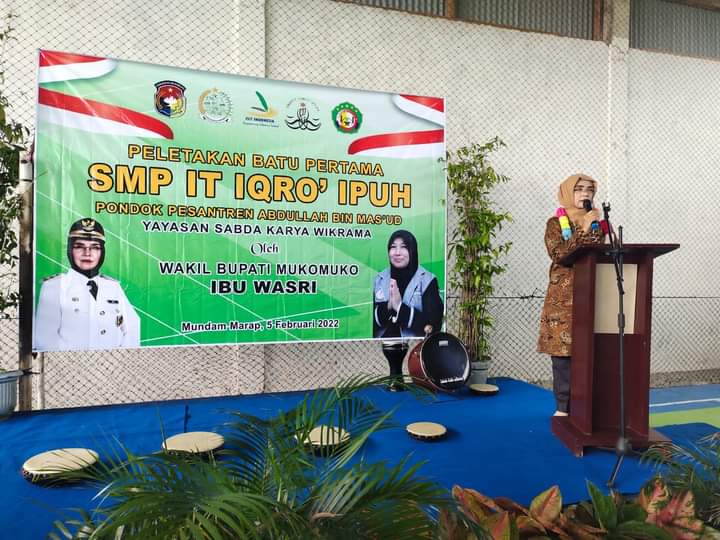 Kemudian Ketua Yayasan Sabda Karya Warakrama Devi Oktavia mengucapkan terimakasih atas dukungan dan kehadiran dari pemerintah daerah dalam hal ini Wakil Bupati Kabupaten Mukomuko dan seluruh tamu undangan dan Devi pun mengatakan, dengan peletakan batu pertama menandakan bahwa pembangunan gedung SMP IT IQRO’ di mulai.