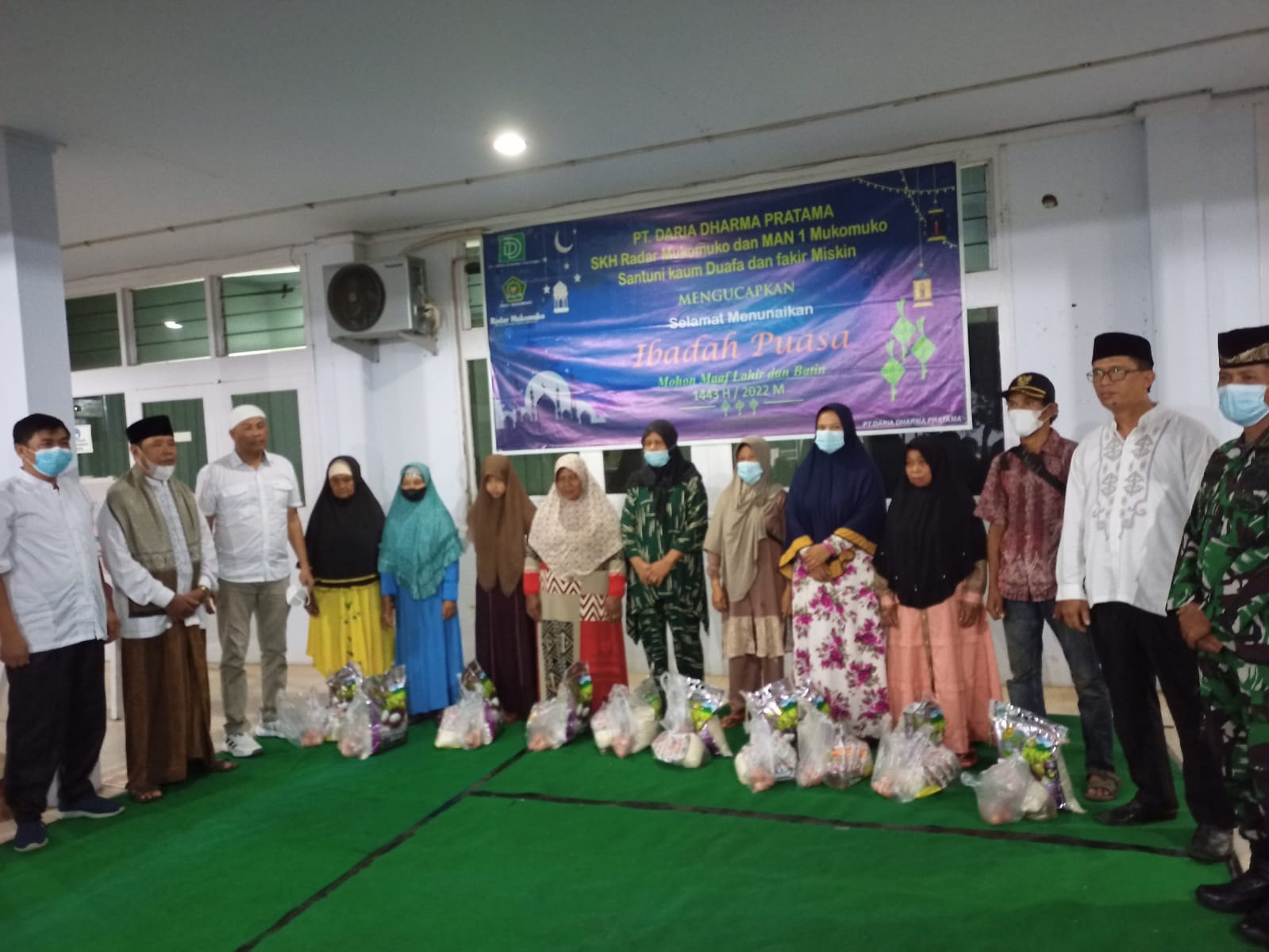 Kegiatan santunan kaum Duafa dan Fakir miskin kerjasama antara PT DDP, SKH Radar Mukomuko dan MAN 1 Mukomuko dalam upaya membantu meringankan kebutuhan sembako di bulan Ramadhan.