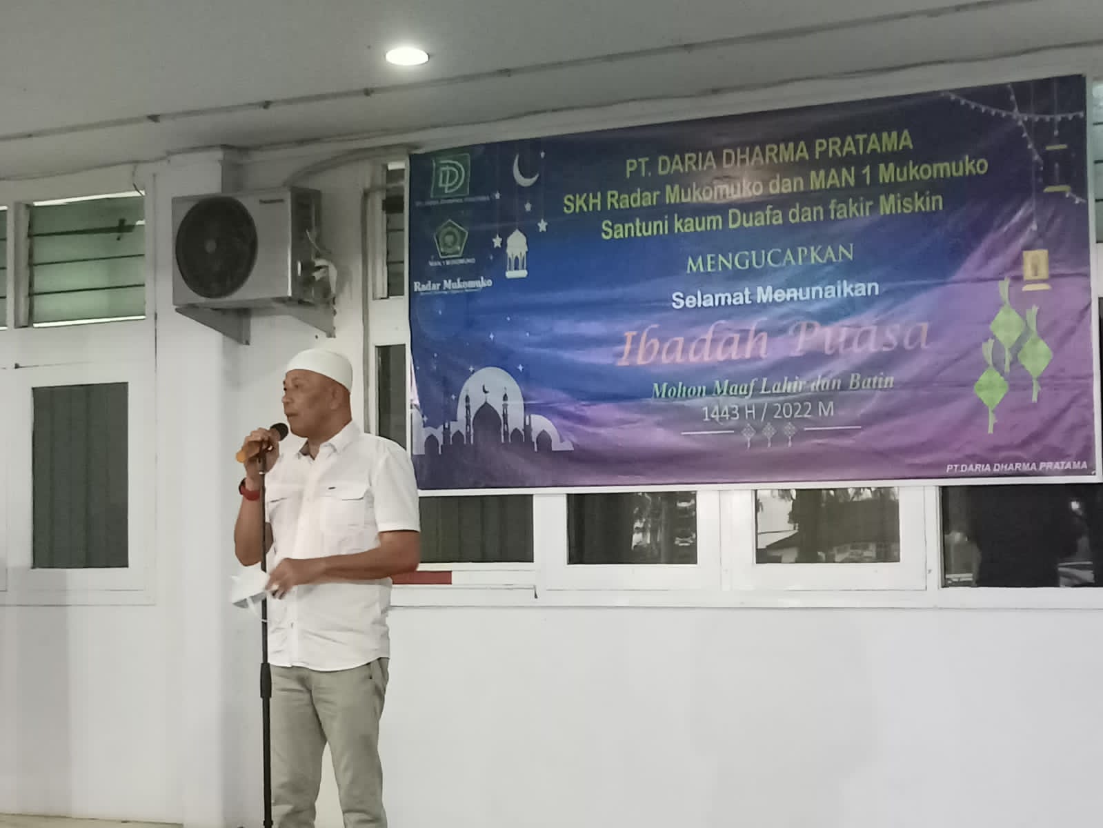 Bertempat di kantor regional PT. Daria Dharma Pratama kegiatan berbagi santunan kaum duafa digelar. Turut hadir General Manager PT DDP. Ir.Mawardi Noor Teuku Meurah, GM Radar Mukomuko Ahmad Kartubi ,SH, Kepala MAN 1 Mukomuko yang diwakili Waka Kesiswaan Diki Nanda Putra ,M.Pd.I dan Pihak Forkopincam Ipuh.Jumat Sore (22/4/22).