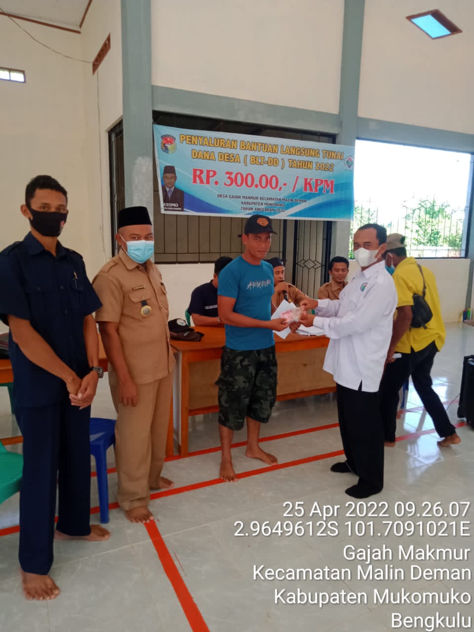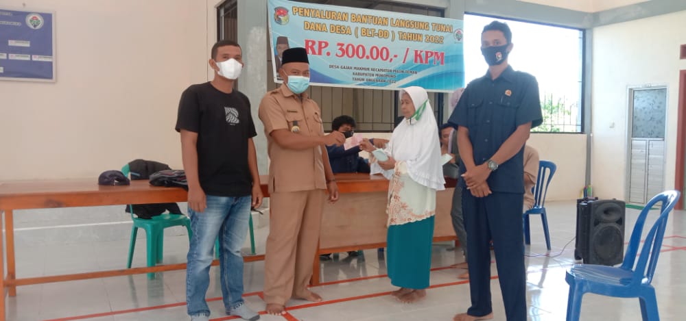 Bertempat di Aula Kantor Desa Gajah Makmur kegiatan penyaluran BLT-DD berlangsung. Turut hadir kepala desa berserta perangkat desa,BPD dan pihak Pendamping teknis desa.Senin (25/4/22).