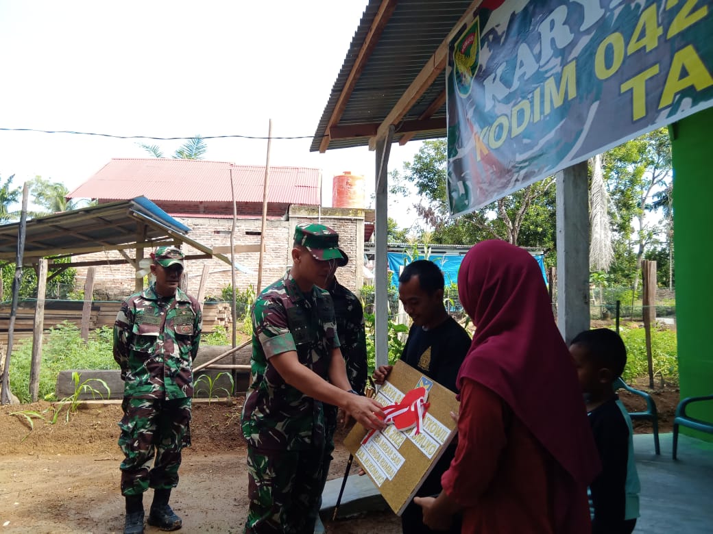 ”Saya minta bapak dapat merawat dan menjaga rumah ini. Semoga dengan rumah yang sekarang, bapak mendapatkan keberkahan dan jangan lupa selalu bersyukur ,” Pesan Dandim saat penyerahan kunci kepada bapak Sutaji selaku penerima bantuan RTLH.
