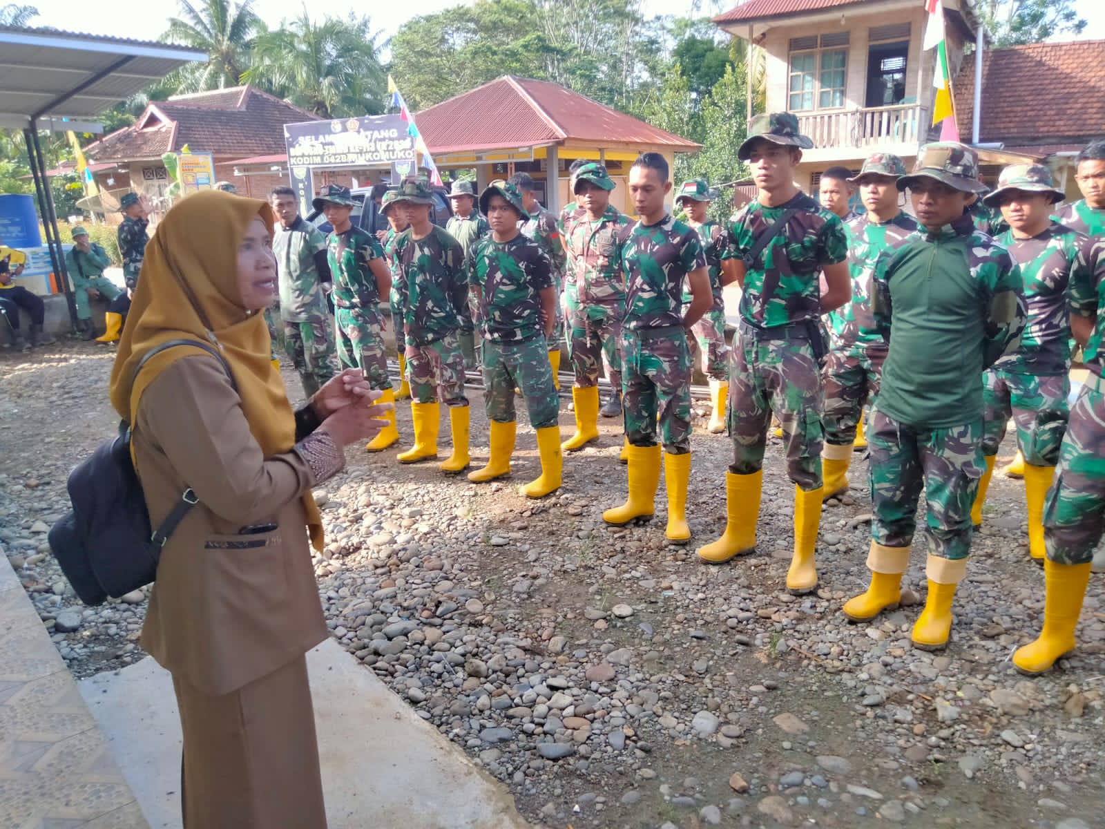 Dalam kegiatan apel pagi Kepala Desa Sidodadi Ibu Sumar Yatun berikan pengarahan dan motivasi kepada Anggota Satgas TMMD Ke-113 Kodim 0428/Mukomuko dalam kegiatan apel pagi.