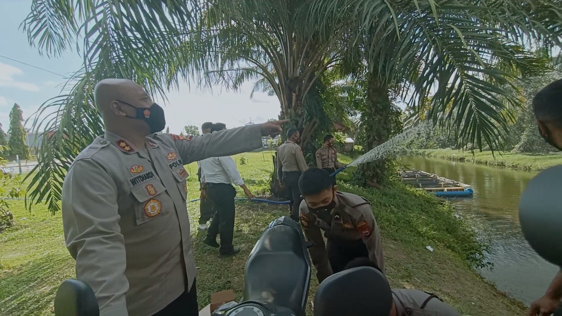 Terpisah Kasat Samapta Polres Mukomuko IPTU.S.M.O. Aritonang.SH menjelaskan terkait penggunaan alat tersebut. Pompa air ini mempunyai dua lubang yang dipasang dengan selang, selang pertama menuju pusat air dan mesin motor dan menjadi penyalur air menuju selang kedua menjadi alat penyemprot airnya. Dan yang terpenting panjang selang di sesuaikan dengan jarak titik air. Jadi kami mengucapkan selang panjang,”jelas Kasat Samapta Polres Mukomuko.