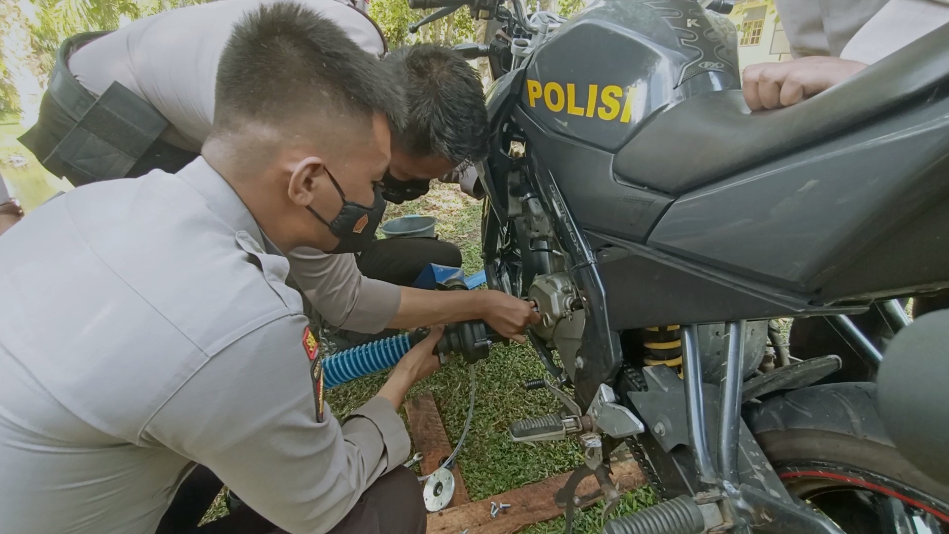 Kabar Bengkulu – Inovasi Polres Mukomuko untuk mengangulangi kebakaran. Dengan memfasilitasi kendaraan bermotor milik Bhabinkamtibmas dengan alat pompa air.