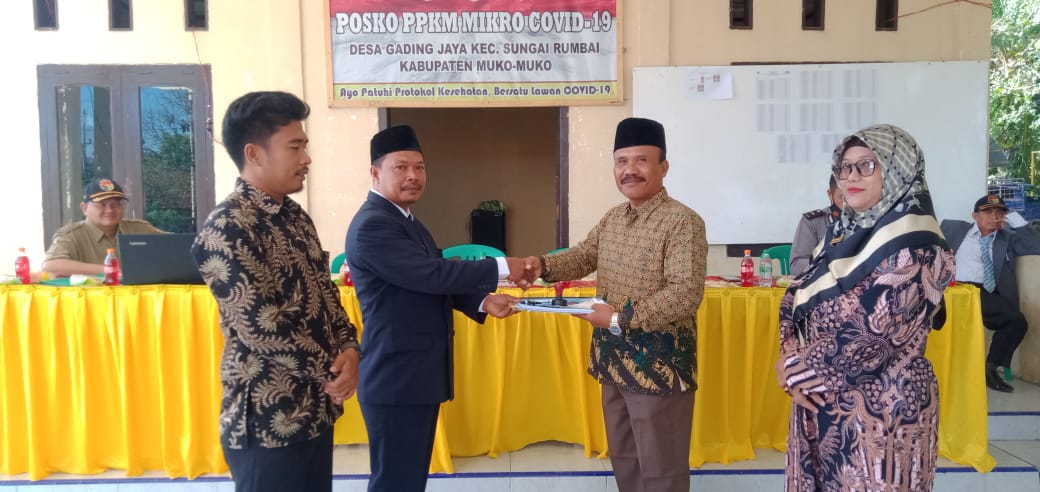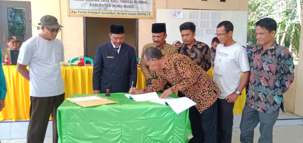 Kabar Bengkulu-Pemerintah Desa (Pemdes) Gading Jaya, gelar Serah Terima Jabatan (Sertijab) Kepala Desa (Kades) yang lama, Rahmadi, SH dengan Kades baru yakni, Azwardi, H. Kegiatan Sertijab itu dilaksanakan di balai Desa Gading Jaya Kamis,(16/6). Dalam kesempatan itu turut hadir perwakilan dari Kecamatan, Bhabinkamtibmas, BPD, kepala kaum, dan tokoh masyarakat desa setempat.