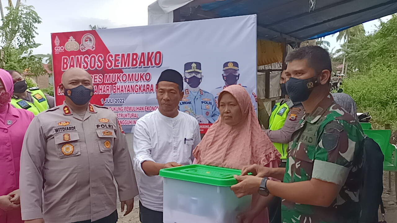 Kegiatan tersebut dalam rangka hari Bhayangkara Ke-76 tahun 2022. Menariknya dalam kegiatan Bansos itu rombongan Kapolres Mukomuko, bersama Komandan Kodim 0428/Mukomuko, menunggangi sepeda motor antik mendatangi rumah warga secara door to door. Di sisi lain secara tidak langsung kegiatan itu juga menunjukkan sinergitas institusi TNI-Polri yang ada di Kabupaten Mukomuko.