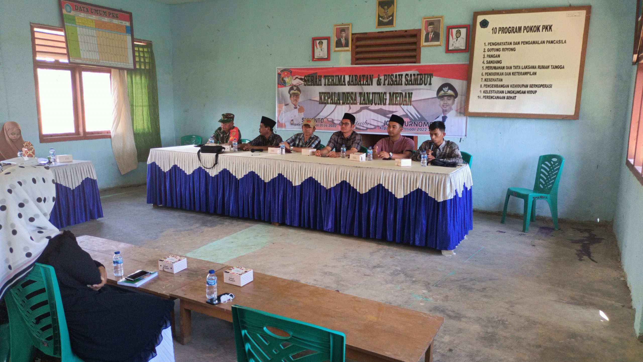 Kegiatan Sertijab dilaksanakan di Aula kantor Desa Tanjung Medan, Minggu (19/6/22). Turut hadir dalam acara ini, Kades lama , Kades terpilih, Sekcam Ipuh, Kasi Ekobang Kecamatan Ipuh, Ketua BPP Ipuh, BPD, Perangkat Desa, Bhabinsa, Tokoh Masyarakat dan tamu undangan lainnya.