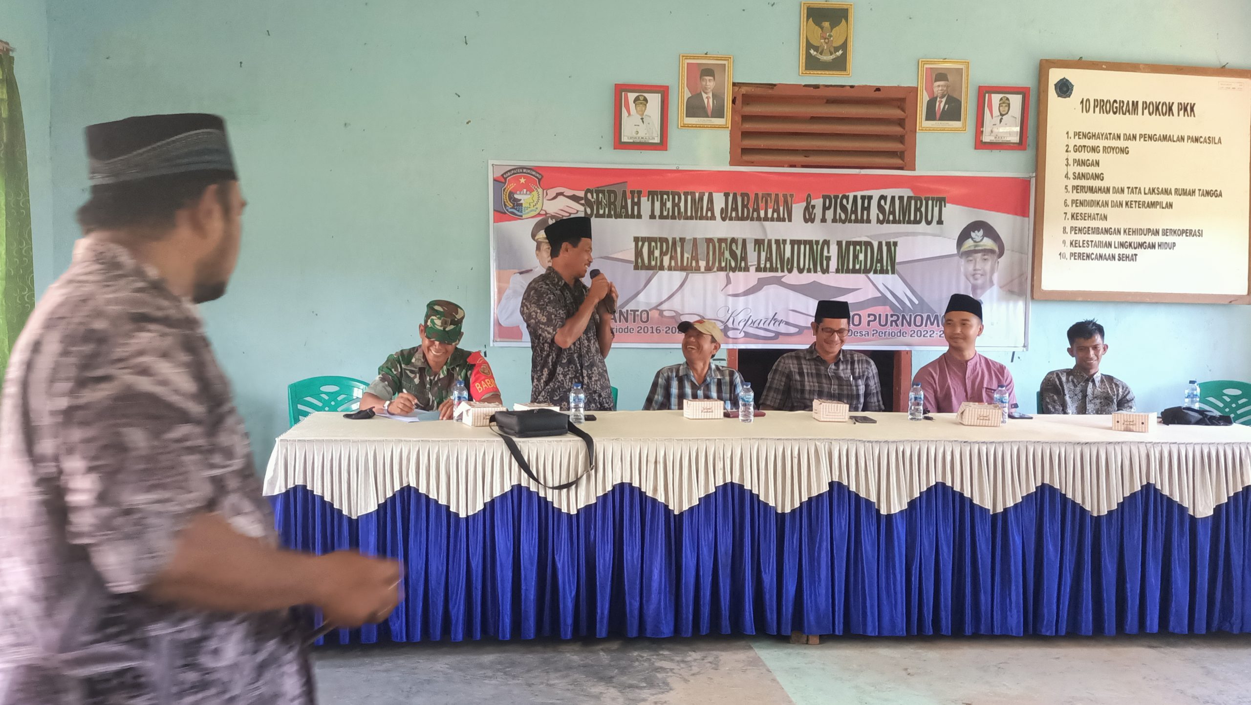 Kades Tanjung Medan lama Suyanto Periode 2016-2022 dalam sambutannya mengungkapkan terimakasih kepada semua lapisan masyarakat Desa Tanjung Medan yang sudah memberikan kepercayaan kepada saya untuk memimpin Desa Tanjung Medan yang kita cintai. Dan bila ada kesalahan baik dari tutur kata dan prilaku saya dalam memimpin desa kepada Allah SWT saya mohon ampun,” ungkap Suyanto.