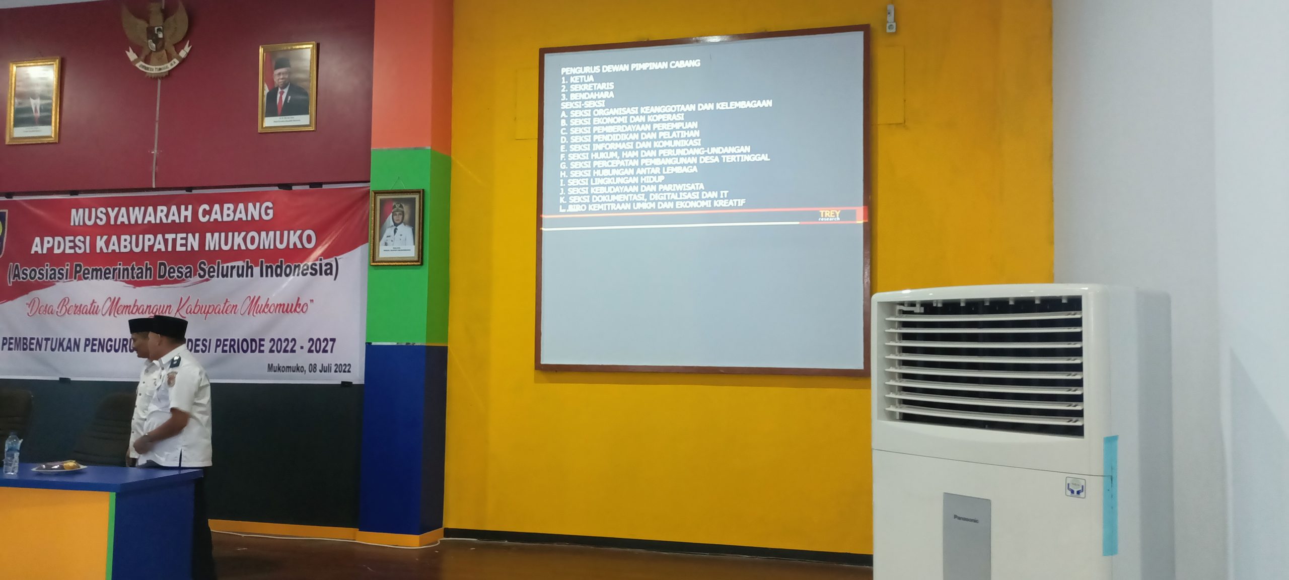 Dalam Musyawarah Cabang Asosiasi Pemerintah Desa Seluruh Indonesia (APDESI) Kabupaten Mukomuko mengagendakan Pembentukan Pengurus DPC APDESI Periode 2022-2027 Kabupaten Mukomuko dengan mengusung tema “Desa Bersatu Membangun Kabupaten Mukomuko”.