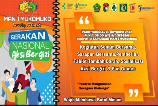 Dapat diketahui kegiatan Gerakan Nasional Aksi Bergizi yang dilaksanakan di MAN 1 Mukomuko berkat kerjasama antara MAN 1 Mukomuko, Kemenag Mukomuko, Pemkab Mukomuko, DPRD Kabupaten Mukomuko, Dinkes Kabupaten Mukomuko Dinas Lingkungan Hidup Kabupaten Mukomuko, Disparpora Kabupaten Mukomuko,KPU Mukomuko, Kecamatan Ipuh, UPTD Puskesmas Ipuh, Forum Komunikasi Kepala Desa ( FKKD) Ipuh,  PT Dharia Dharma Pratama (DDP) Utama Motor Honda dan Media Online kabarbengkuku.id Serta DPC MOI Kabupaten Mukomuko, Apotek Hati dan Klinik Al Azza.( KB/jf)