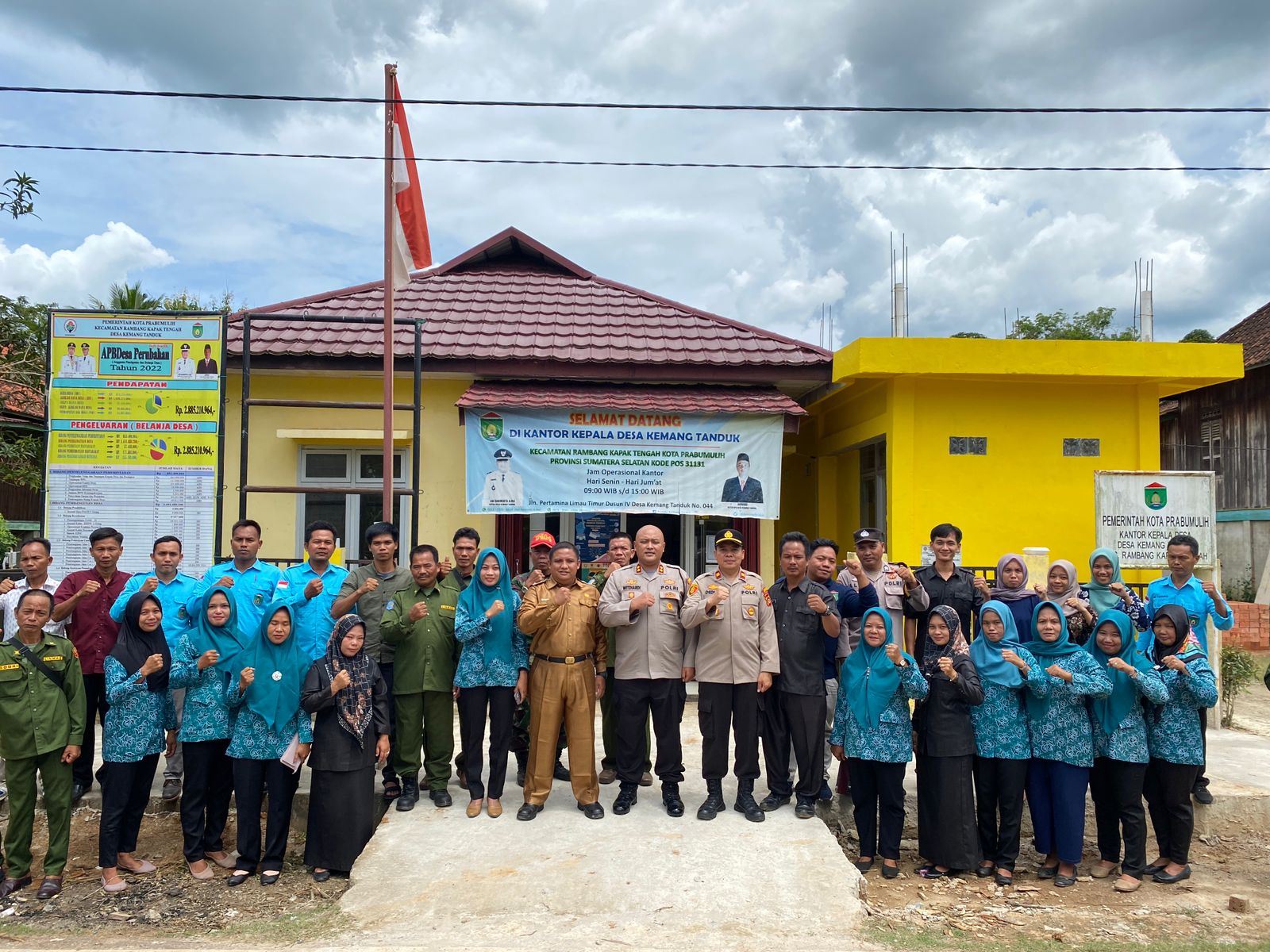 Kabar Polisi – Dalam program Ngantor di desa Kapolres Prabumulih, AKBP. Witdiardi .,SIk.,MH bersama Kapolsek RKT di Desa Kemang Tanduk, langsung disambut Kades Kemang Tanduk, Adi Darminto AMd bersama warganya. Setelah itu, Kapolres Prabumulih, AKBP Witdiardi SIk MH mengapresiasi Siskamling dalam menjaga Kamtibmas telah dilakukan warga Desa Kemang Tanduk. Minggu (4/12/22)