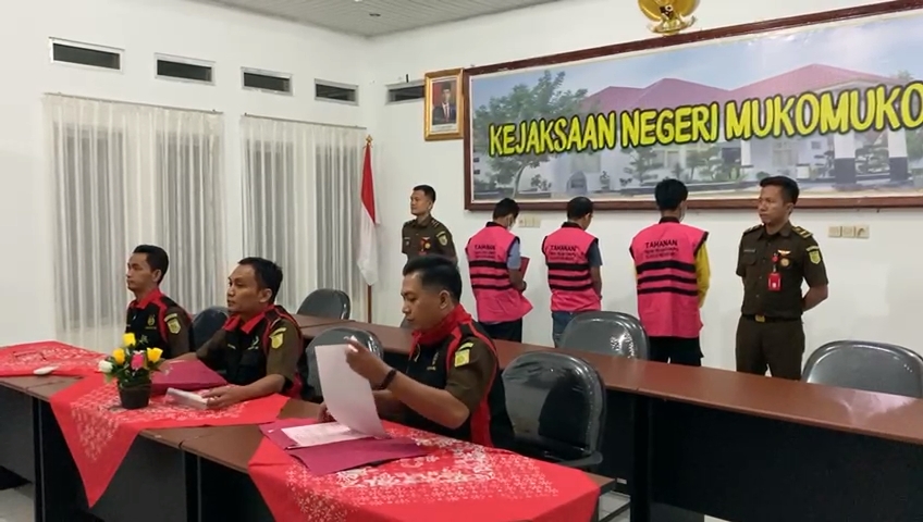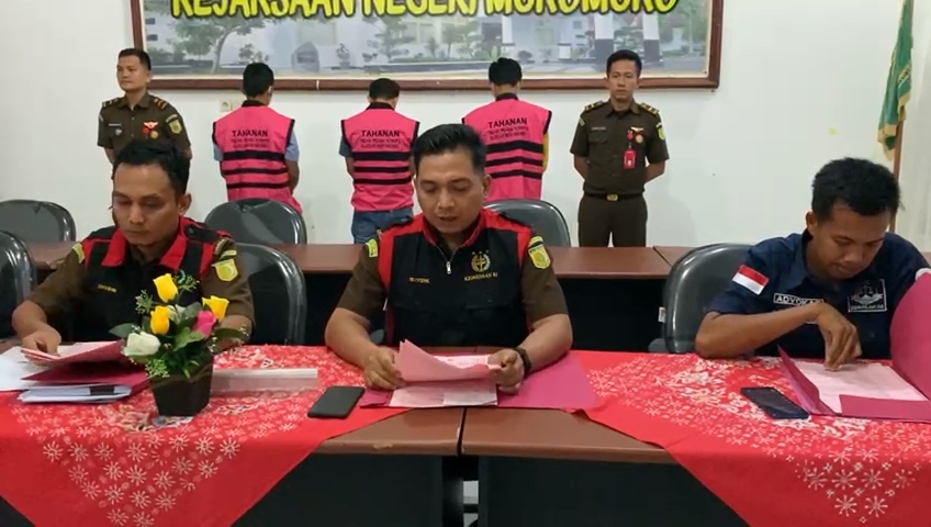 Penetapan ketiga tersangka ini disampaikan Kajari Mukomuko Rudi Iskandar SH.MH melalui Kasi Pidsus Agung Malik Rahman SH, yang didampingi Kasi Intel dan Kasi Datun pada Konferensi pers yang digelar di Aula Kejaksaan Negeri Mukomuko, Senin malam (5/12/22).