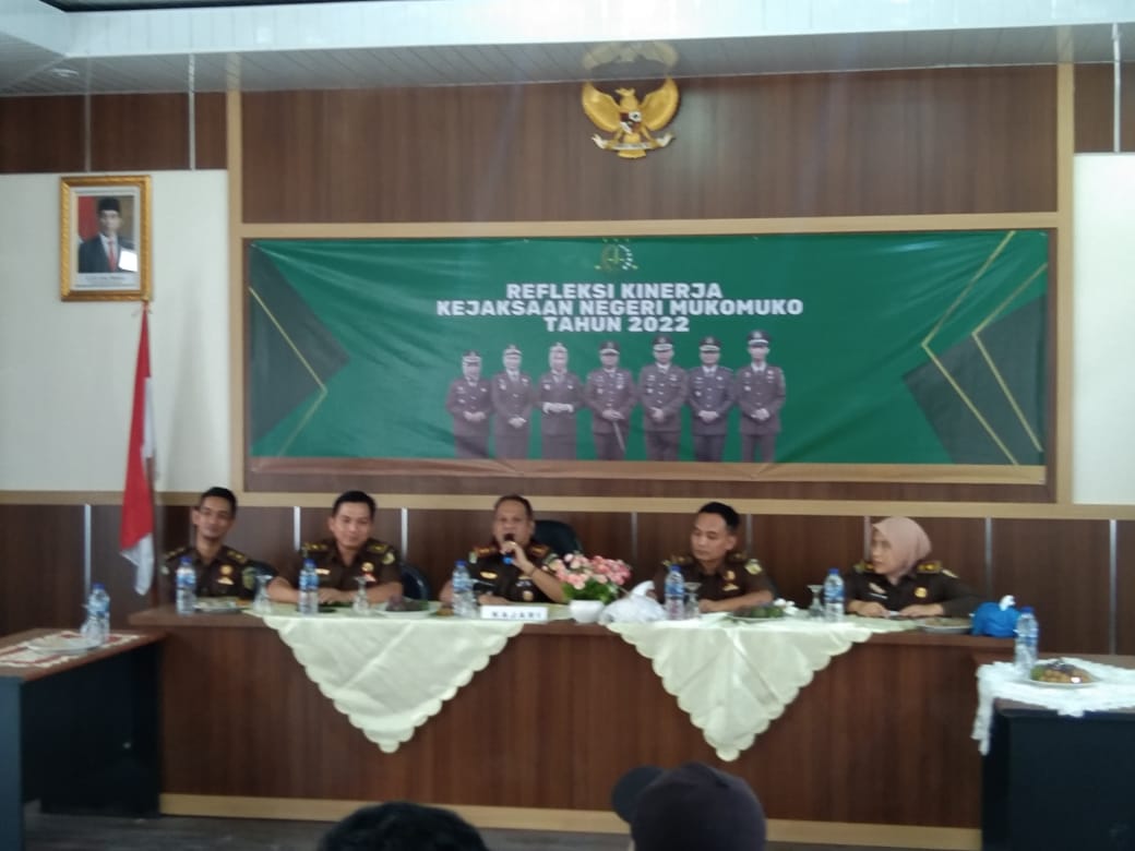 Selanjutnya, Refleksi Akhir Tahun 2022 Kejari Mukomuko mulai dipaparkan oleh masing masing bidang, yang dimulai dari Kasi Intelijen, Kasi Pidsus, Kasi Datun dan Kasubsi Barang Bukti.