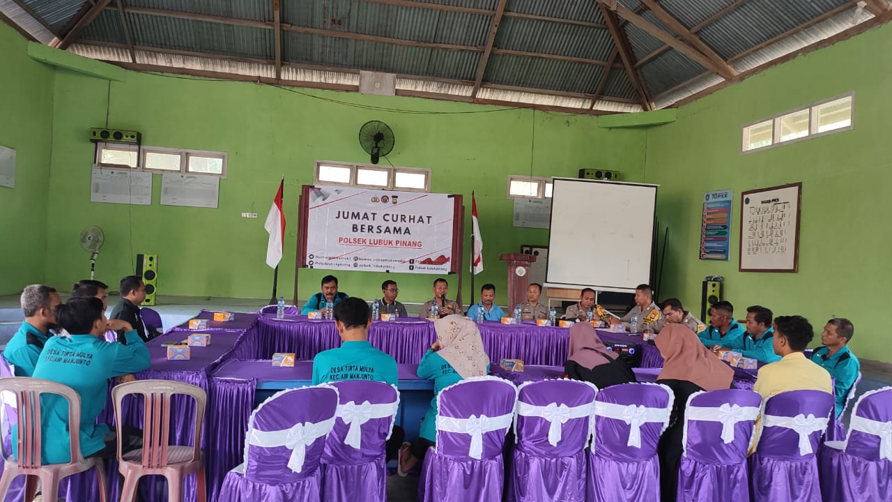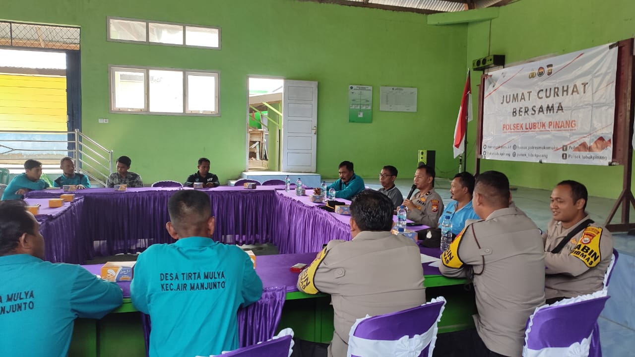 Kabar Polisi– Polsek Lubuk Pinang menggelar Jum’at Curhat dengan Masyarakat Desa Tirta Mulya dan Tirta Makmur serta para Mahasiswa yang sedang melaksanakan KKN di Desa tersebut, acara yang dilaksanakan di Aula Kantor Desa Tirta Mulya Kecamatan Air Manjuto Kabupaten Mukomuko, Jumat (13/1/23).