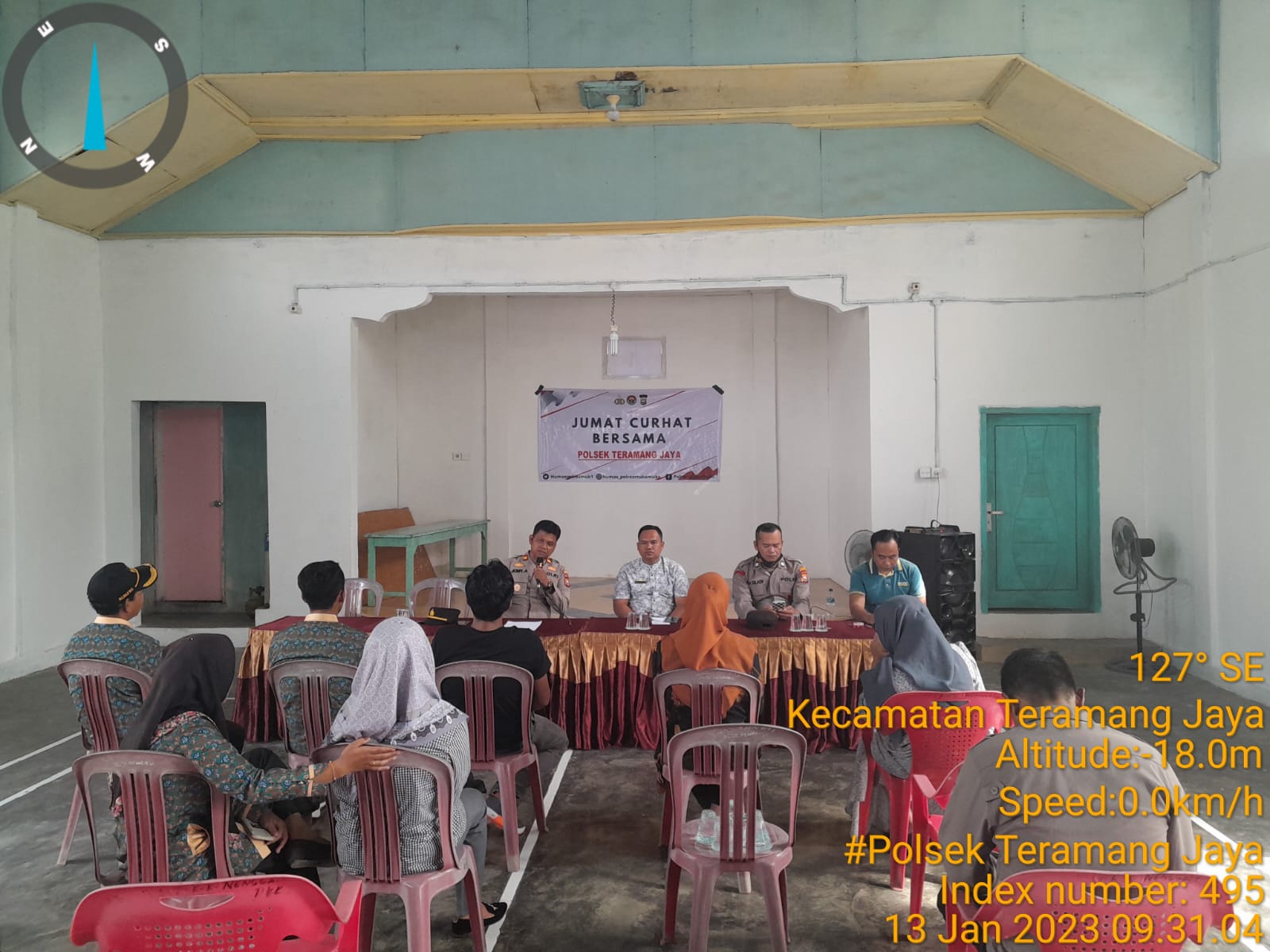 Dalam kegiatan Jumat Curhat itu, Kapolsek Teramang Jaya menyampaikan, bahwa giat Jumat Curhat ini bertujuan agar dapat terjalin siraturahmi yang baik antara Polri dengan berbagai elemen yang ada dimasyarakat.