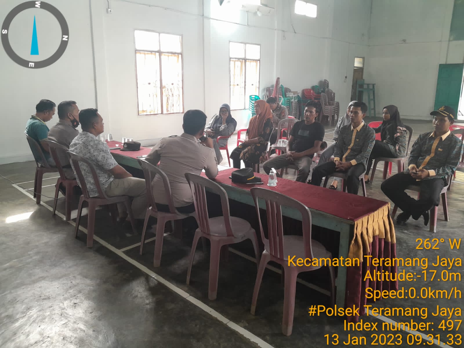 Kabar Polisi-Kapolsek Teramang Jaya bersama Personilnya melaksanakan Kegiatan Jum’at Curhat bersama dengan Pemdes Nenggalo dan Masyarakat di Aula Kantor Desa Nenggalo Kecamatan Teramang Jaya Kabupaten Mukomuko, Jumat (13/1/23).