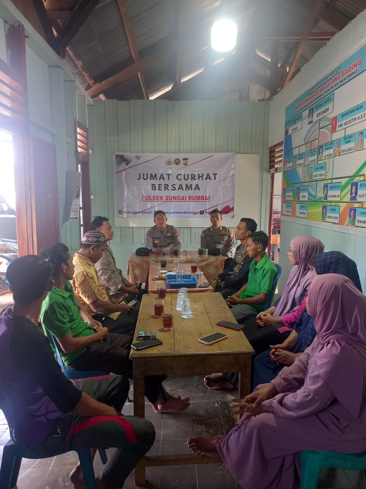 Kabar Polisi-Polsek Sungai Rumbai mengadakan Jumat Curhat dengan Pemerintahan Desa Talang Gading di Kantor Desa Talang Gading Kecamatan Sungai Rumbai Kabupaten Mukomuko, Jumat (27/1/23).
