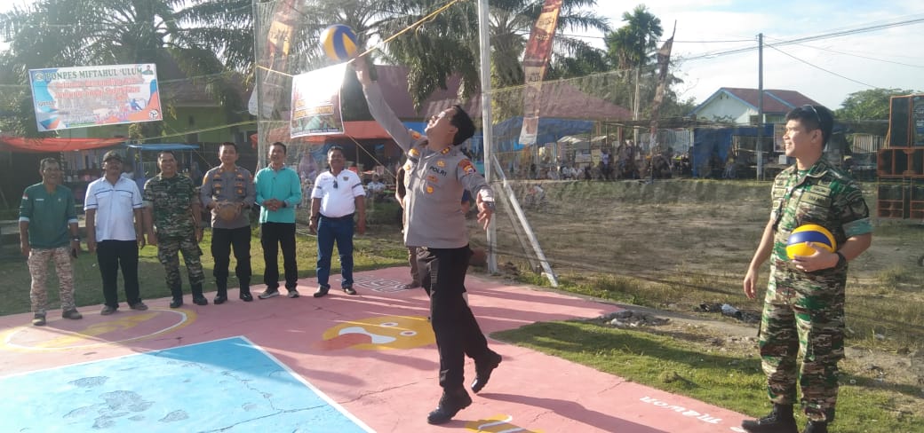 Kabar Olahraga-Kapolres Mukomuko AKBP Nuswanto SIK MH yang didampingi Dandim 0428/MM Letkol Czi Rinaldo Rusdy SIP resmi membuka Turnamen Bola Voli Semi Open 2023 Taruna Sakti di Lapangan DKK, Desa Sumber Makmur Kecamatan Lubuk Pinang Kabupaten, Jumat Sore (10/2/23).