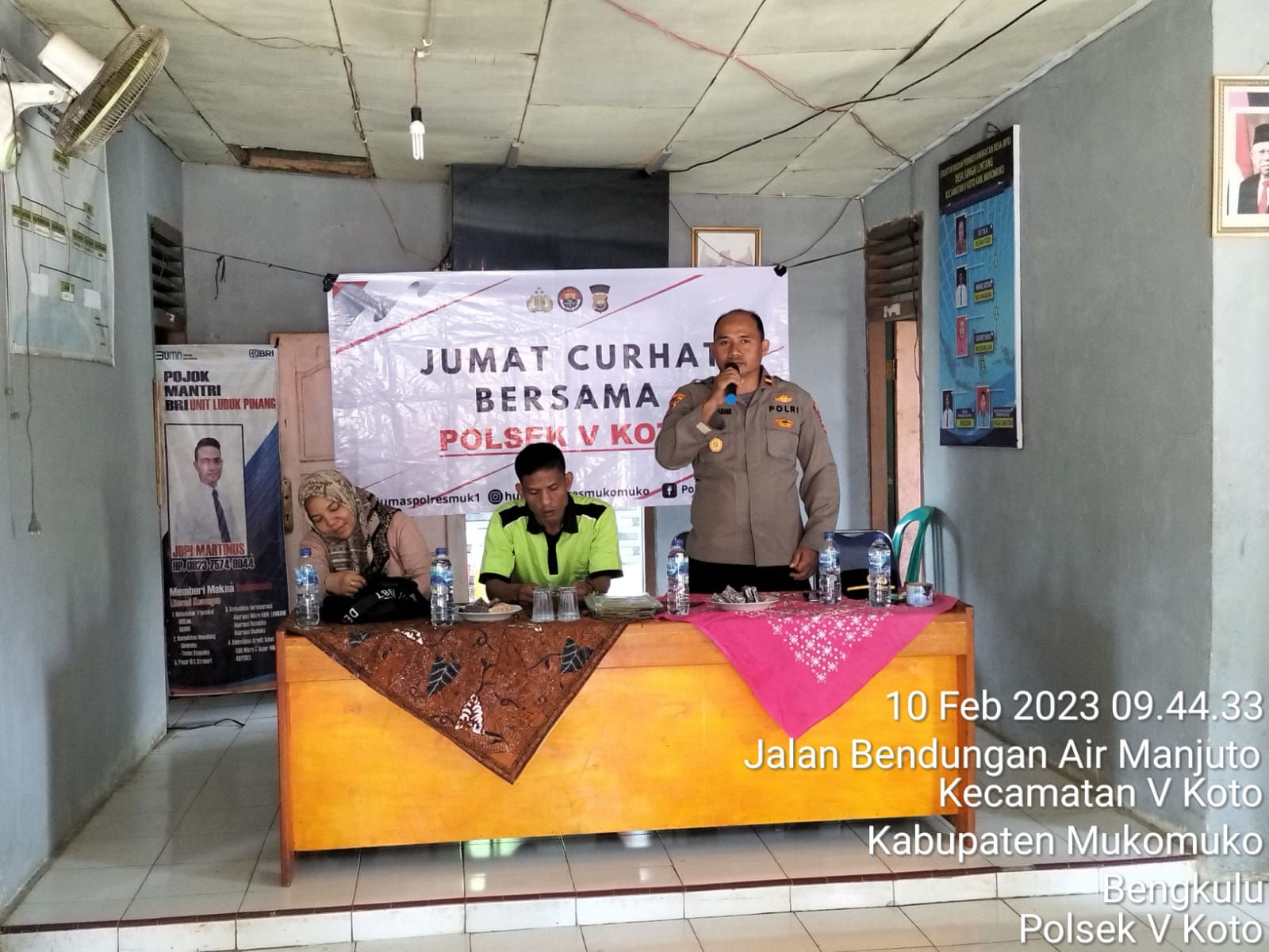 Kabar Polisi-Polsek V Koto menggelar Jumat Curhat dengan Pemerintahan Desa Sungai Lintang di Kantor Desa Sungai Lintang Kecamatan V Koto Kabupaten Mukomuko, Jumat (10/2/23).