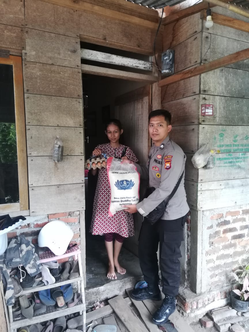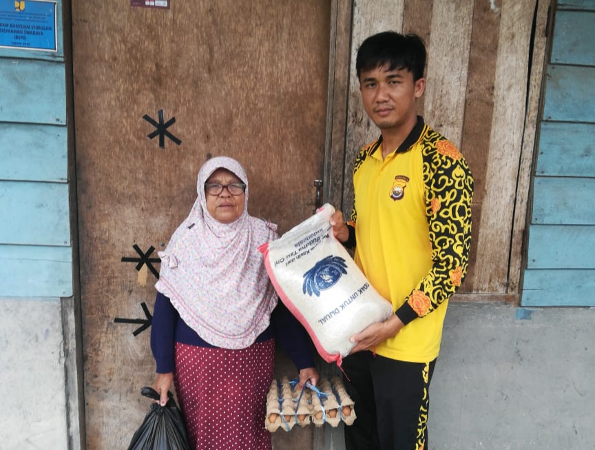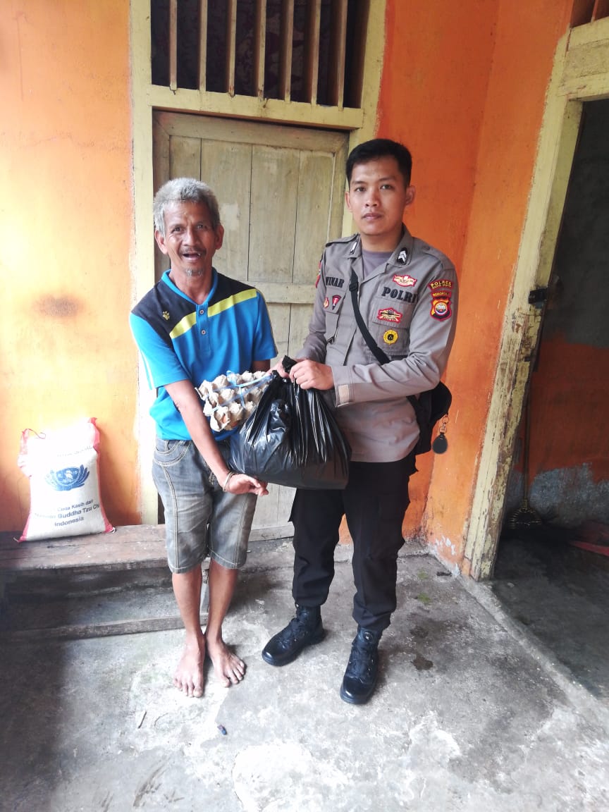 Personil mukomuko bagikan sembako kepada 10 KK berupa 10 paket dengan tiap paket berisi 10 Kg beras, ayam, Minyak Goreng, Mi Instan , Gula Pasir ,kopi, teh, kecap, sarden kalengan, Susu Kental Manis ,roti dan bumbu dapur lainnya.