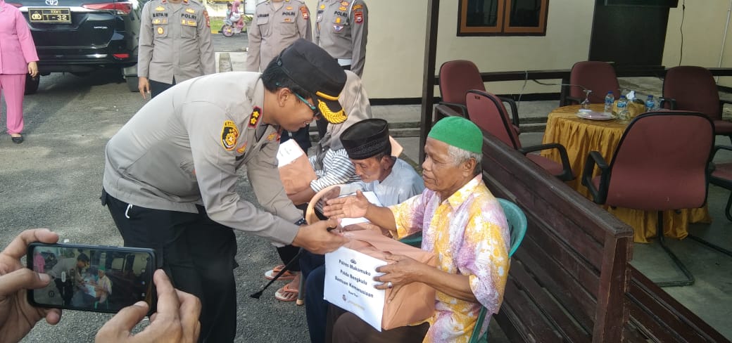 Kabar Polisi-Hal tersebut disampaikan Kapolres Mukomuko AKBP Nuswanto SIK MH disaat pembagian Bantuan Kemanusiaan kepada Lansia/kaum Dhuafa usai kegiatan pembagian 1000 Takjil di Mapolsek Mukomuko Selatan, Senin (3/4/23).