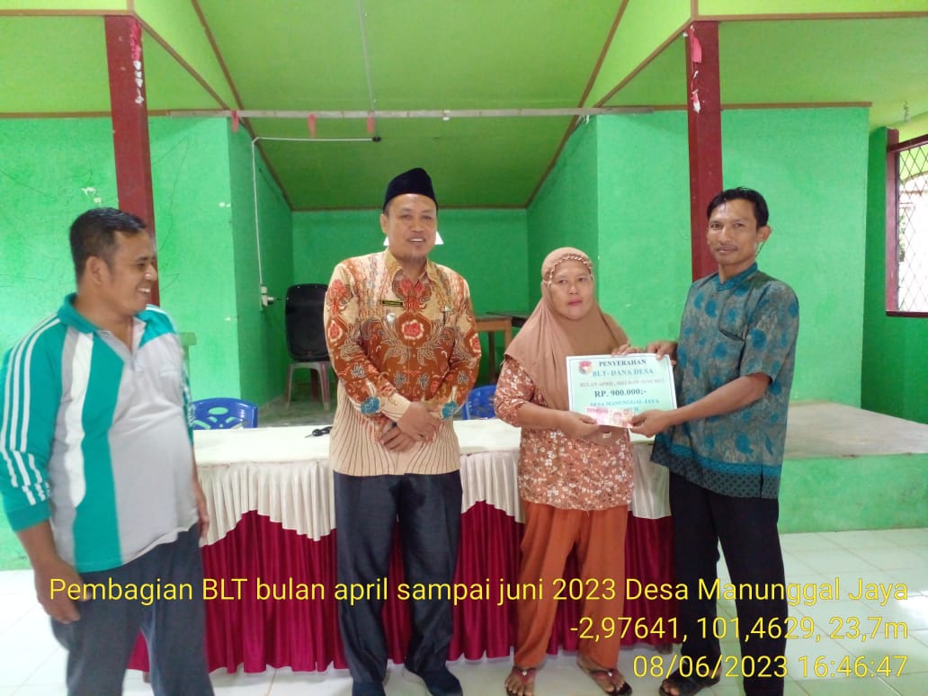 Kepala Desa (Kades) Manunggal Jaya, Suyud dalam sambutannya menjelaskan. Saya selalu kepala desa yang baru sangat mengapresiasi Pemerintah dengan adanya bantuan BLT-DD yang diterima KPM Desa Manungal Jaya, namun saya berharap kepada KPM agar menggunakan dana tersebut untuk pemenuhan kebutuhan sembako ditambah kondisi perekonomian di masyarakat saat ini sedang tidak baik,”kata Suyud.