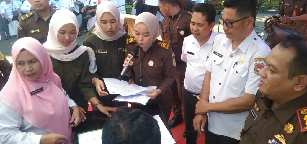 Kabar Bengkulu, Mukomuko- Kejaksaan Negeri Mukomuko menggelar Program Jaga Desa dan penandatanganan Fakta Integritas Anti Korupsi Dengan seluruh Kades bersama Kaur Keuangan di Kabupaten Mukomuko,.yang digelar di halaman Kantor Kejaksaan Negeri Mukomuko, Rabu Siang (21/6/23).