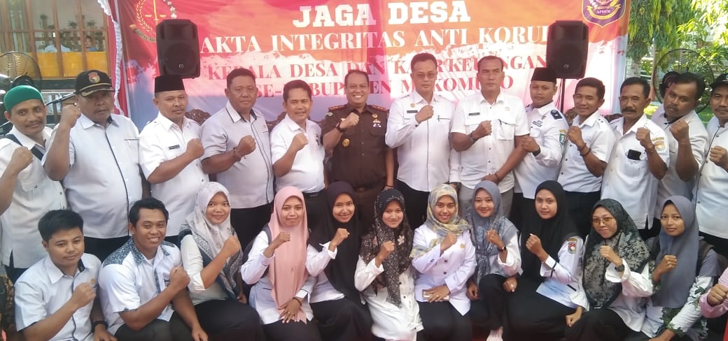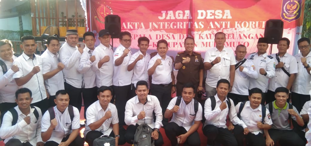 Acara kemudian dilanjutkan denga Penandatanganan Fakta Integritas Anti Korupsi oleh para Kades dan Kaur Keuangan yang disaksikan Kajari Mukomuko, Inspektorat, para Camat masing masing Desa dan Ketua APDESI Kabupaten Mukomuko serta dilanjutkan dengan sesi foto bersama.