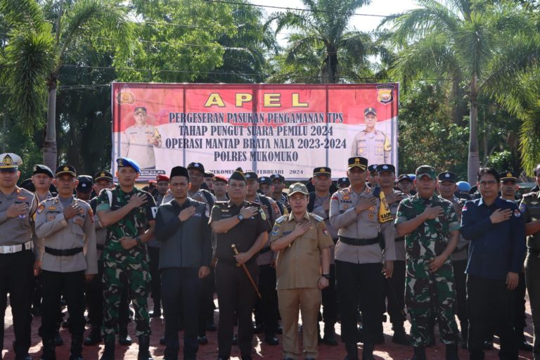 Kabar Pemilu– Polres Mukomuko melaksanakan Apel Pergeseran Pasukan Pengamanan TPS Tahap Pungut Suara Pemilu Serentak tahun 2024, kegiatan yang digelar di Lapangan Apel Mapolres Mukomuko, Senin (12/2/24).
