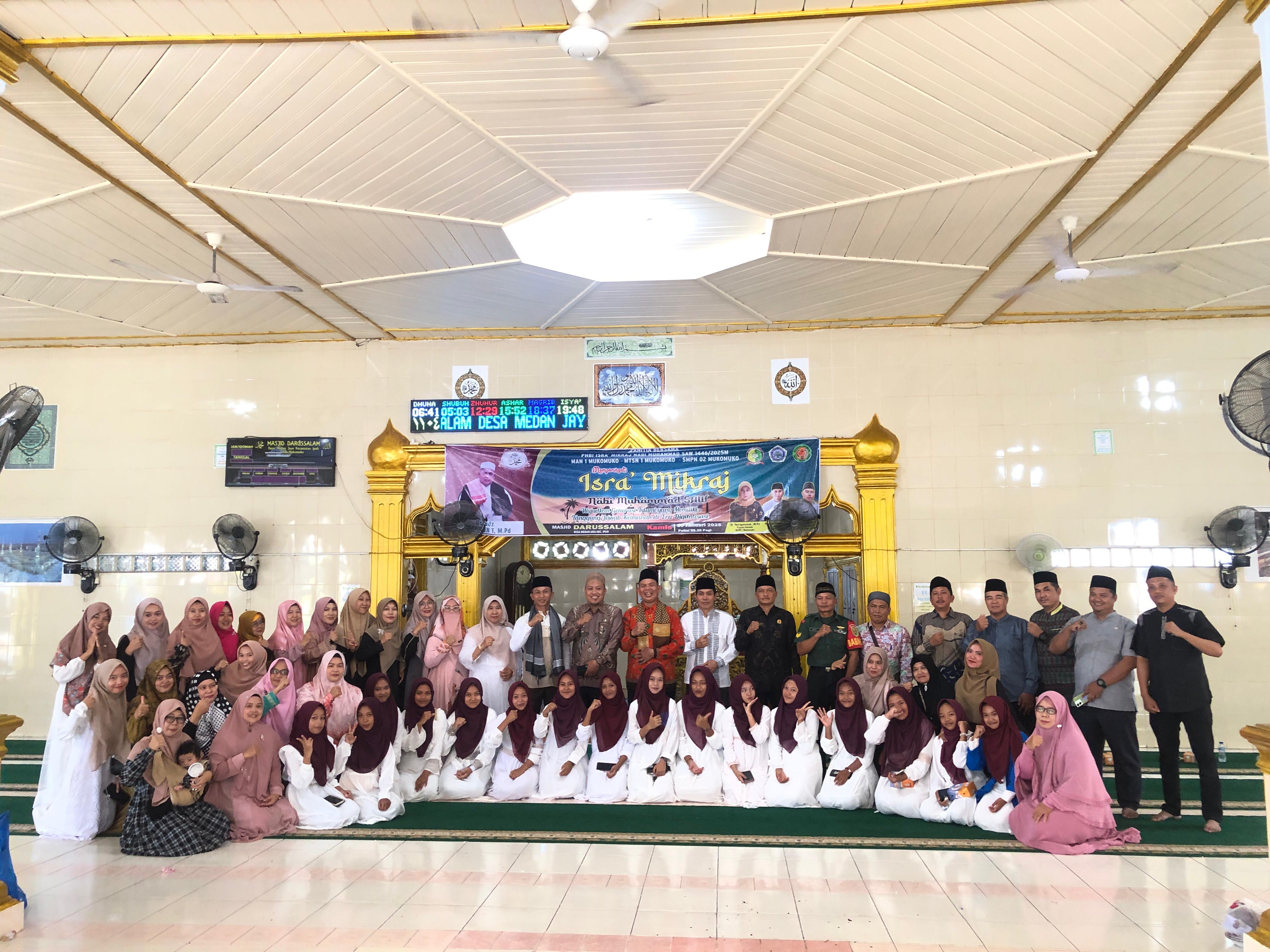 Kegiatan Isra Mikraj yang diselenggarakan oleh MAN 1 Mukomuko, MtsN 1 Mukomuko, dan SMPN 2 Mukomuko di Masjid Darussalam Desa Medan Jaya merupakan upaya untuk memperingati peristiwa luar biasa ini dan menggali lebih dalam pesan-pesan yang terkandung di dalamnya. Melalui kegiatan ini, para siswa dapat belajar tentang keagungan dan kebesaran Allah SWT serta kesetiaan dan ketabahan Nabi Muhammad SAW dalam mengemban risalah kenabian.